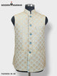 The design features a mandarin collar and a sleek button-down front. The elegant buttons add a touch of finesse, enhancing the overall appeal of the koti. The thoughtful craftsmanship ensures that every detail speaks of quality and heritage.