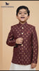 Elegant Jodhpuri suit for boys in maroon with golden motifs, perfect for festive occasions