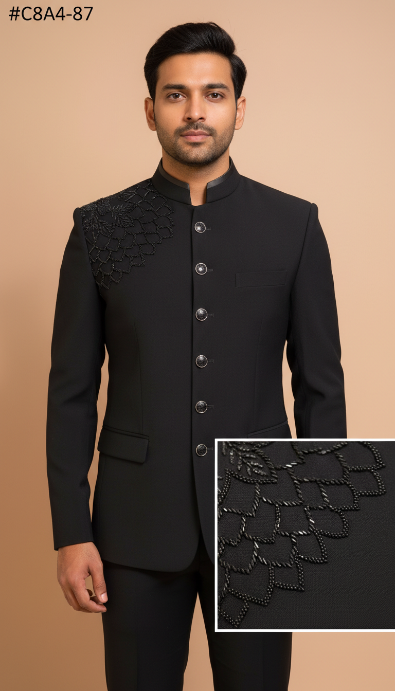 Modern Marwar Black Embroidered Bandhgala Suit for Men 1040