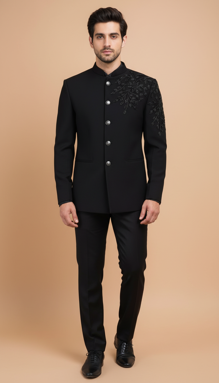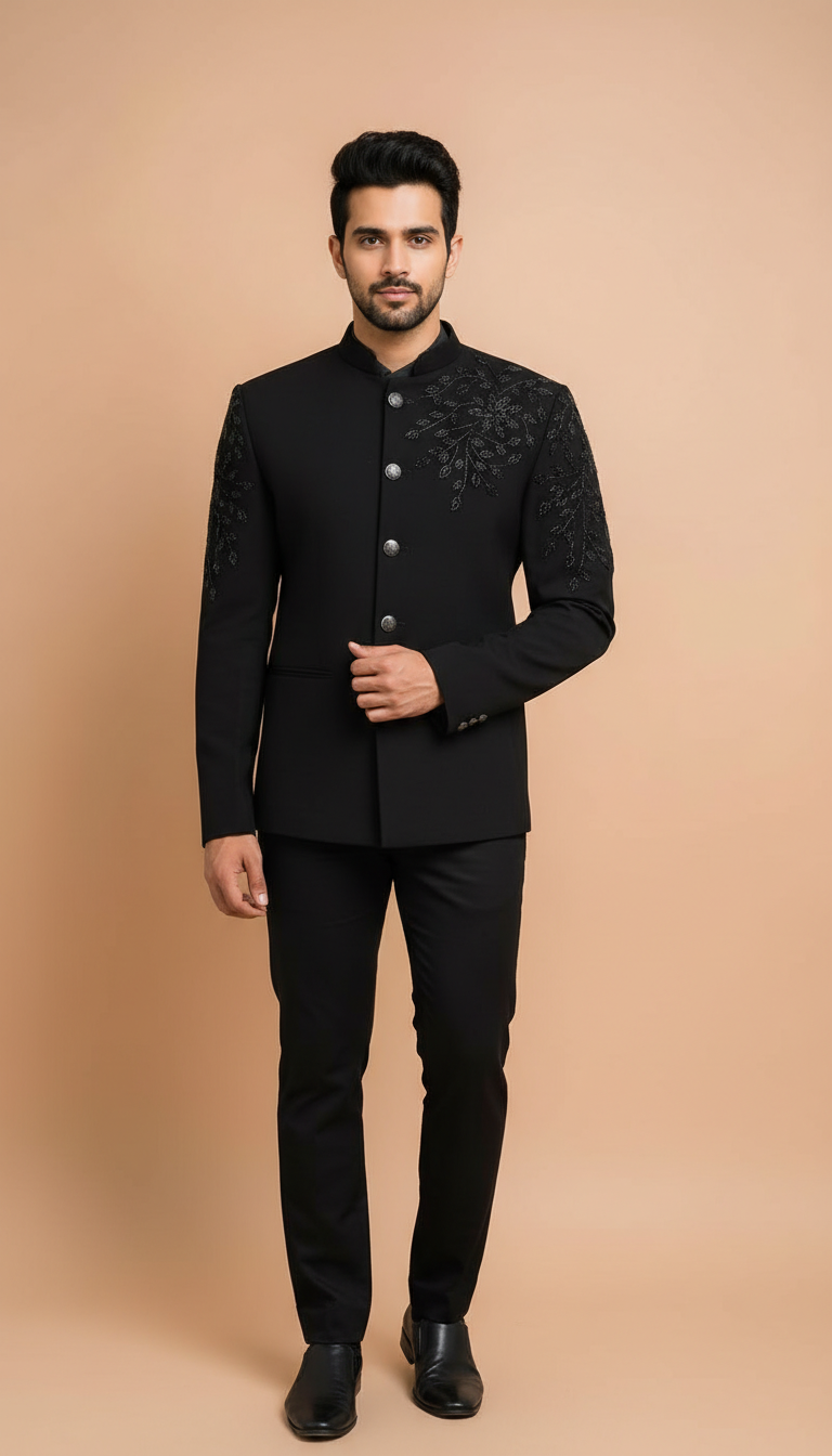 The royal bandhgala suit for men blends tradition with modern elegance. Crafted from high-quality fabric, it features intricate embroidery that adds a sophisticated touch. This suit is perfect for formal occasions or festive celebrations, making any man stand out in style.
